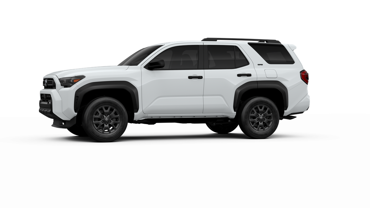- Black horizontal-bar grille, mirror caps, door handles, and overfenders; color-keyed rear spoiler; black "SR5" and "4RUNNER" badges