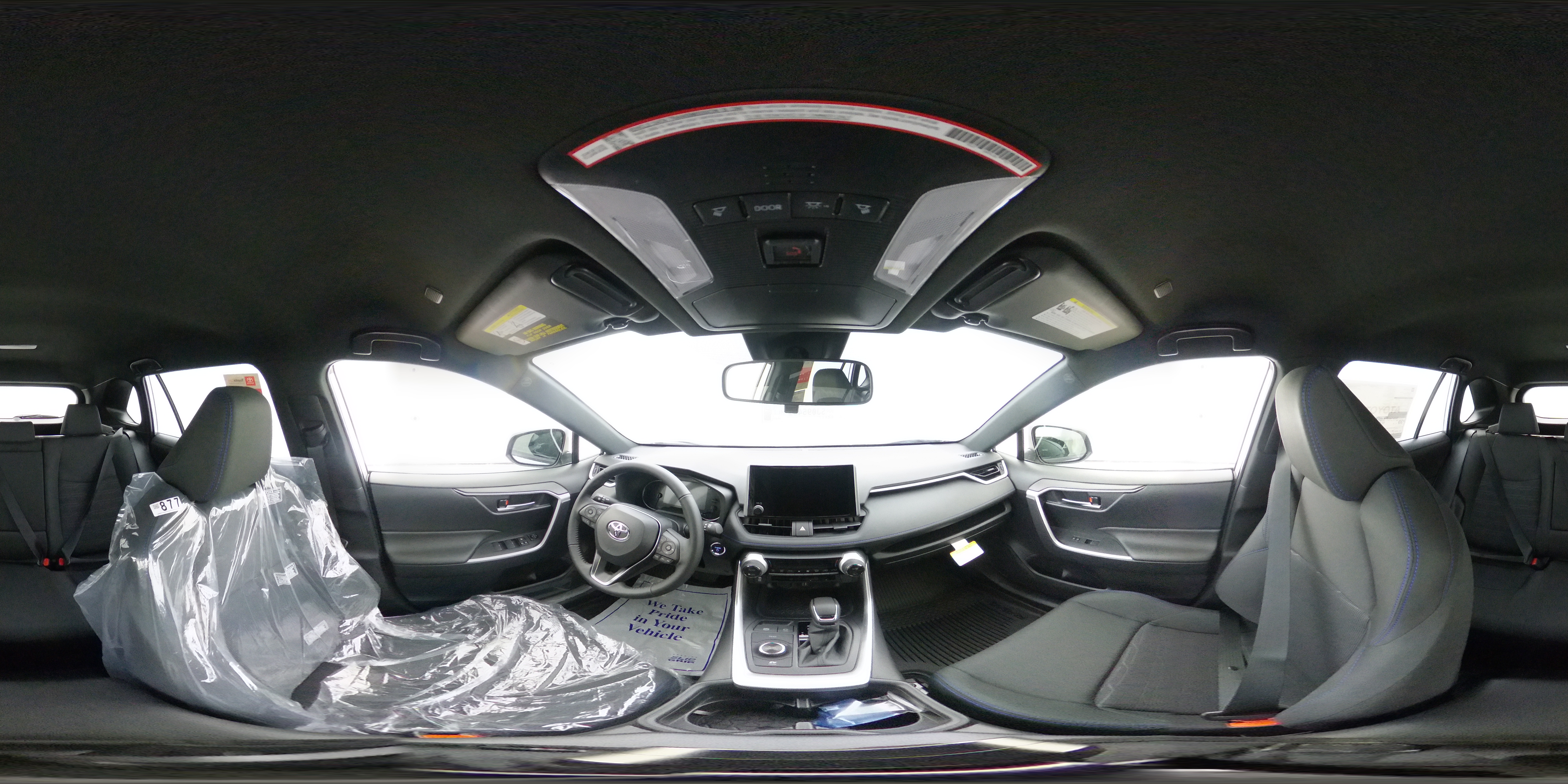 - Black fabric-trimmed headliner