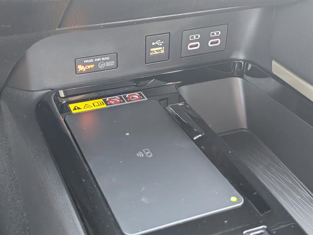 - Five USB ports: one USB-A media port and two USB-C charging ports up front, with one USB-A and one USB-C charging port in the rear