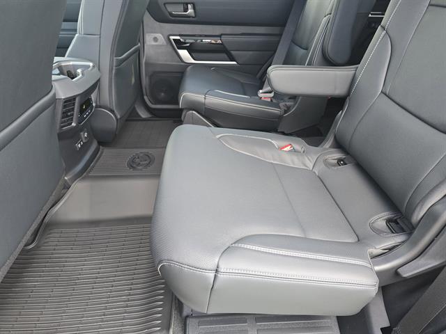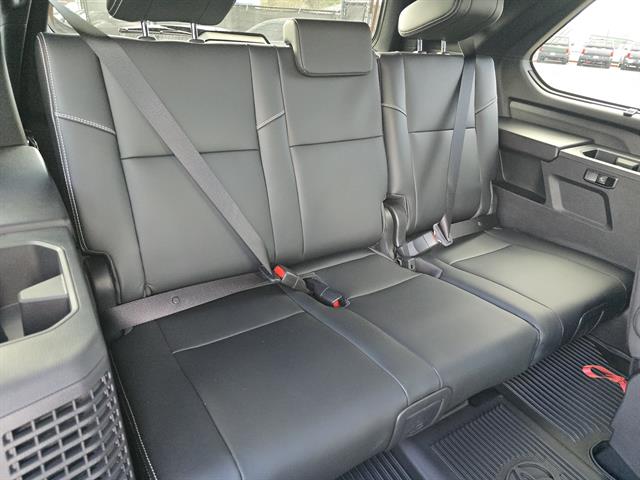 - Leather-trimmed 60/40 split, sliding, power-reclining, fold-down third-row seats with adjustable headrests