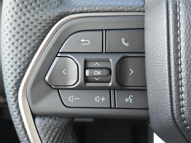 - Leather-wrapped manual tilt/telescopic steering wheel with phone, audio, display/infotainment, and Driver Assist controls
